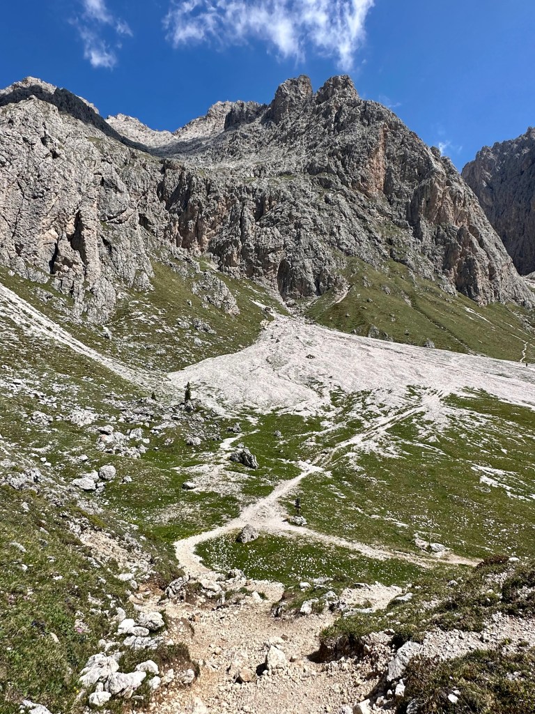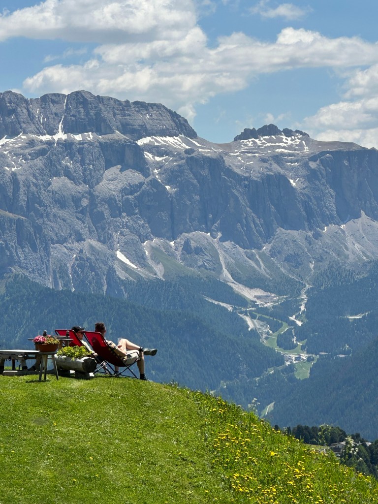 The views from Rifugio Firenze / Regensburger Hütte are wonderful and the food is delicious. Baita Troier Hütte, further along the route, is a great lounge spot with immense views. There were a lot of people napping in the sun, lounging, and eating here. I didn’t eat, but the food looked good. The lounge chairs were very nice, though.